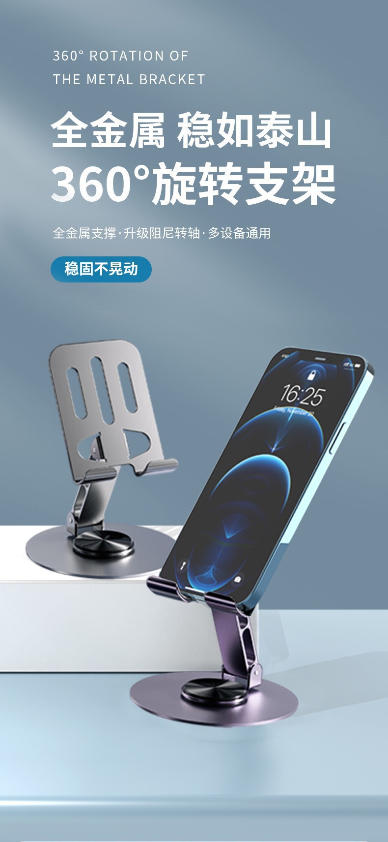 360度旋转金属直播手机支架